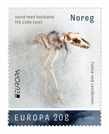 Bildet av et hundeskjelett funnet i Lendbreen i Skjåk er kåret til årets fineste frimerke i Europa.
