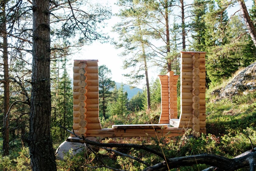 Plassert omtrent halvveis på pilegrimsleden mellom Oslo og Nidaros, og høyt i landskapet over Gudbrandsdalen, åpner verket for både utsikt og innsikt.