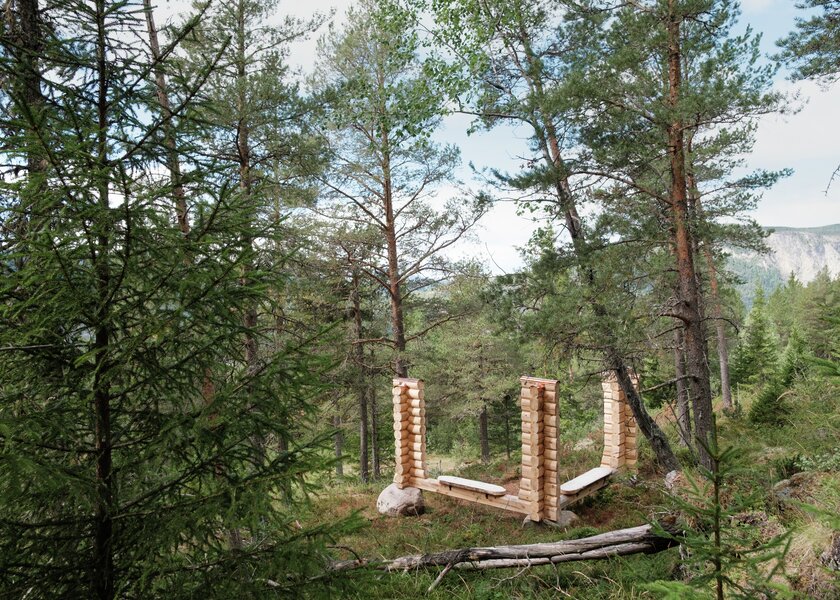 «Reiser og ruiner» er en kunstinstallasjon i tre og stein, bestående av tre søyler bygget opp av lafteknuter fra ulike tidsepoker i Gudbrandsdalen: findalslaft, rævskorolaft og barkjelaft.
