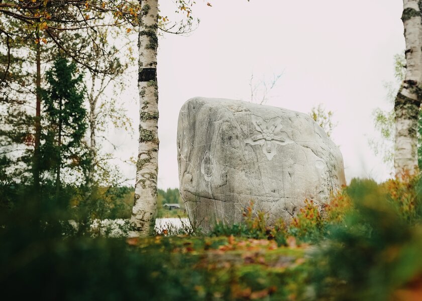 Plasseringen og bruken av en kampestein som materiale for skulpturen gjør at det ser ut som den alltid har stått på stedet. Den naturlige formen og overflaten utgjør en kontrast til den bearbeide flaten, der mønster, sprekker og hulrom er en del av motivet og relieffene.