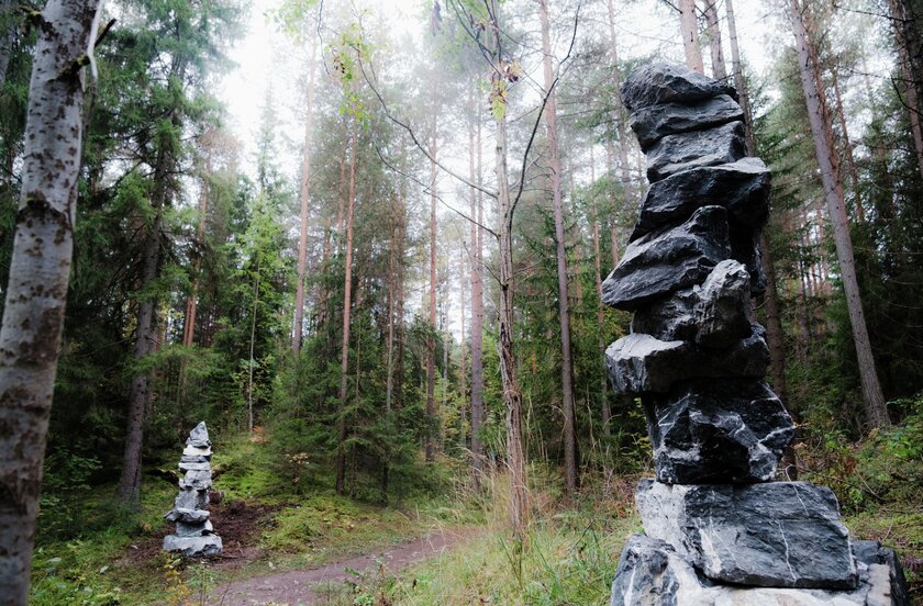Skulpturene består av steiner som er stablet oppå hverandre i form av en 2,5–3 meter høy søyle. Dette gjøres ved å tre hver stein over en stang av rustfritt stål som er fundert i bakken. Den bærende konstruksjonen er ikke synlig, men antyder en slags «umulig» balansert tilpasning av de uthugde steinene.